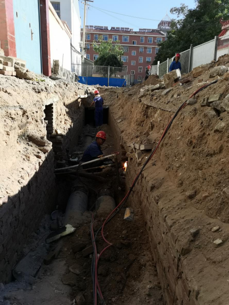 到目前,庭院管網(wǎng)部分,已開挖管溝70米,剩余主管網(wǎng)和樓棟支線預(yù)計(jì)16天全部鋪設(shè)焊接完成;單元立管部分全部焊接完成,戶內(nèi)分戶改造完成55戶。