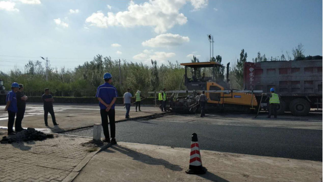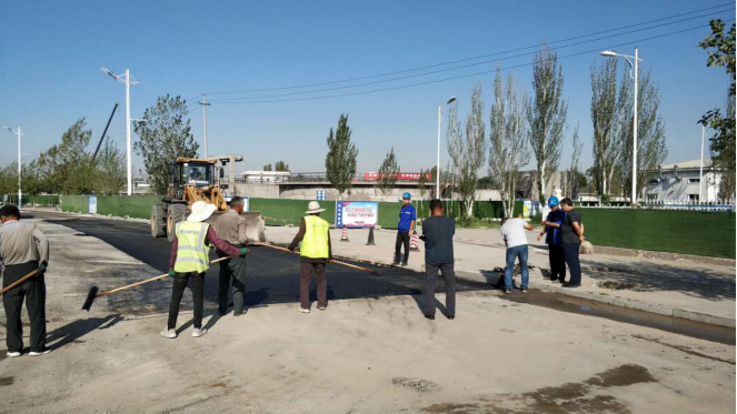 此段道路下方有污水處理廠技術(shù)改造工程3趟工藝管線、北部?jī)羲畯S至污水處理廠2趟濃鹽水管線以及污水處理廠至熱電廠2趟中水管。需恢復(fù)的道路長(zhǎng)約235米、寬16米,烏海市城市建設(shè)投資集團(tuán)有限責(zé)任公司為保證本次“雙創(chuàng)”檢查工作順利進(jìn)行,加班加點(diǎn)進(jìn)行路面恢復(fù)。