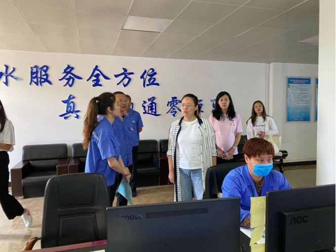 供水公司團總支迎接烏海市基層組織建設“百日攻堅”專項行動督導組調(diào)研試點工作。8月18日上午由團市委組宣部部長龔書瑤帶隊,團市委組宣部副部長王子璇、團市委及海區(qū)團委多名團干共同組成的調(diào)研隊來到供水公司“青年愛里”實地調(diào)研走訪,供水公司黨委副書記王永斌、團總支書記陳琳、團總支文體委員張煜敏、營業(yè)團支部書記趙玲、營業(yè)團支部支委余鴻一起陪同調(diào)研。