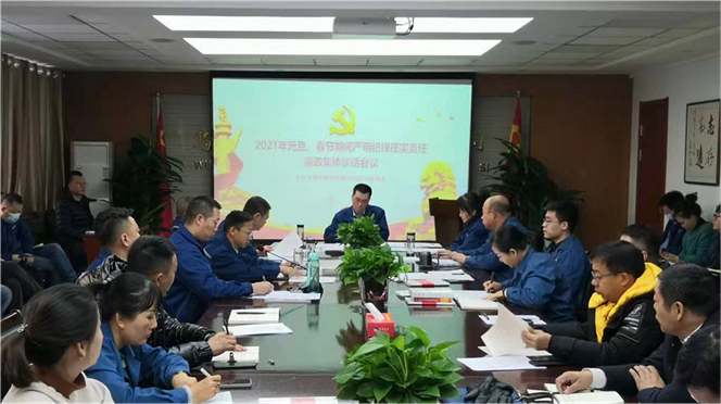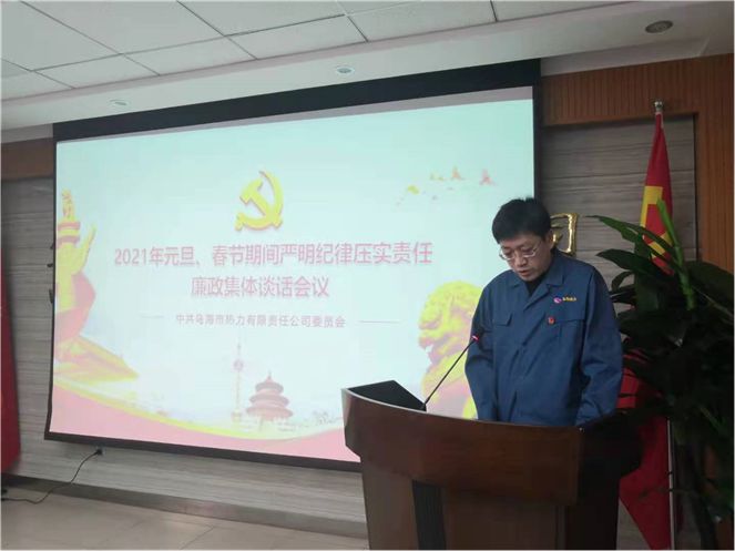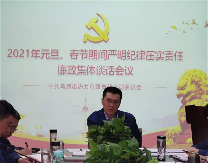 2021年元旦、春節(jié)將至,為不斷鞏固落實中央八項規(guī)定精神成果,持之以恒正風肅紀、糾治“四風”,營造風清氣正的節(jié)日氛圍,12月29日,烏海市熱力有限責任公司召開2021年元旦、春節(jié)期間嚴明紀律壓實責任廉政集體談話會議,會上首先由熱力公司紀檢書記張淑清傳達烏海市紀委監(jiān)委《關(guān)于2021年元旦、春節(jié)期間進一步嚴明紀律的通知》。