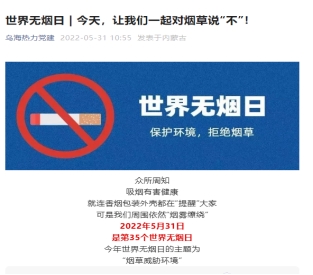 (集團(tuán)公司、市熱力公司利用微信公眾號(hào)宣傳推廣控?zé)熆破罩R(shí)、發(fā)布無煙日活動(dòng)倡議。)
