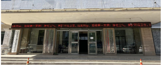 (濱河房地產(chǎn)公司利用辦公樓LED電子屏滾動(dòng)式播放無煙日為主題的宣傳標(biāo)語)