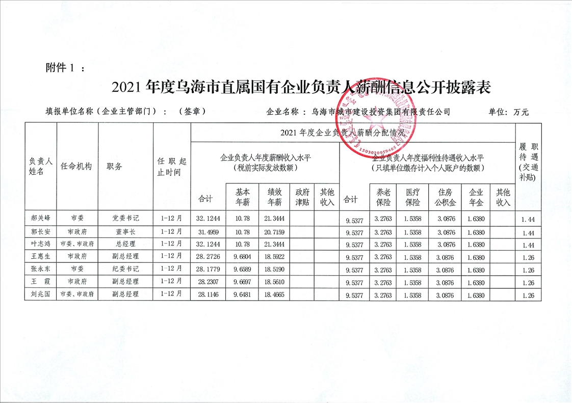 烏海市城市建設(shè)投資集團(tuán)有限責(zé)任公司2021年度企業(yè)負(fù)責(zé)人薪酬信息公開(kāi)披露表