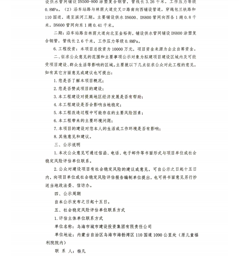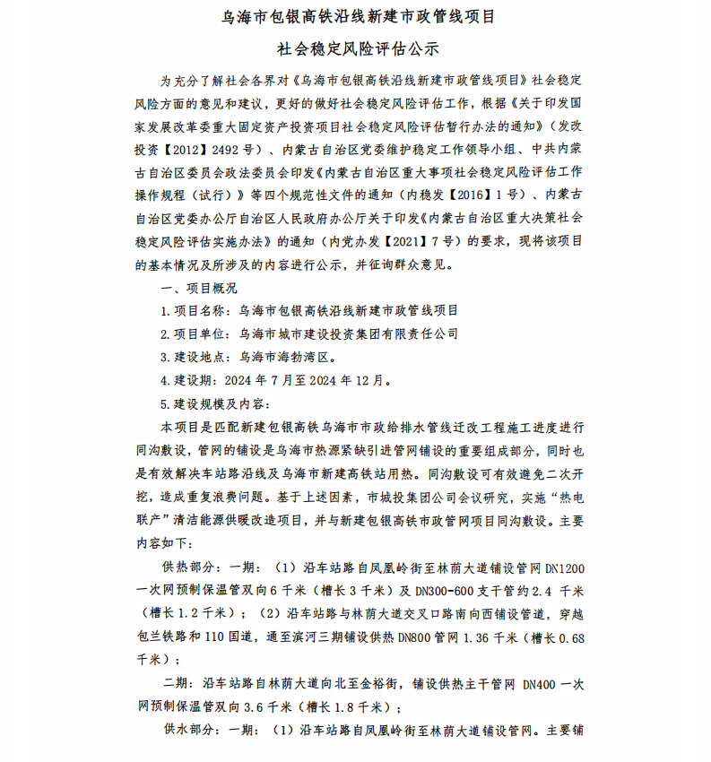 烏海市包銀高鐵沿線新建市政管線項(xiàng)目社會(huì)穩(wěn)定風(fēng)險(xiǎn)評(píng)估公示