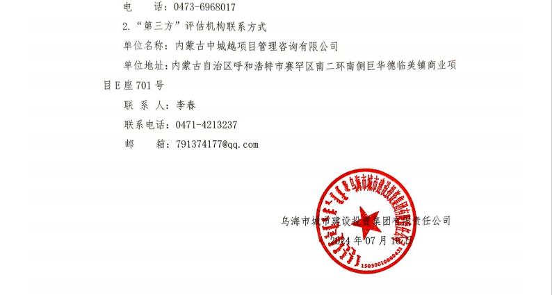 - 2025-10-14烏海市城市建設(shè)投資集團(tuán)有限責(zé)任公司關(guān)于終止與內(nèi)蒙古華格項(xiàng)目管理咨詢有限責(zé)任公司業(yè)務(wù)合作的通知