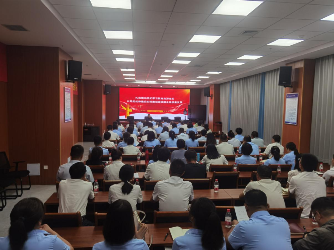 會(huì)上,王利峰同志以“扎實(shí)推動(dòng)黨紀(jì)學(xué)習(xí)教育走深走實(shí) 以黨的紀(jì)律建設(shè)實(shí)效推動(dòng)國資國企高質(zhì)量發(fā)展”為主題,圍繞準(zhǔn)確深入學(xué)習(xí)領(lǐng)會(huì)習(xí)近平總書記關(guān)于全面加強(qiáng)黨的紀(jì)律建設(shè)的重要論述、準(zhǔn)確把握《中國共產(chǎn)黨紀(jì)律處分條例》、緊密結(jié)合國有企業(yè)改革發(fā)展實(shí)際,把加強(qiáng)紀(jì)律建設(shè)要求落實(shí)到實(shí)際工作中等三個(gè)方面,系統(tǒng)深入地為黨員干部職工講授了一堂生動(dòng)的專題黨課。