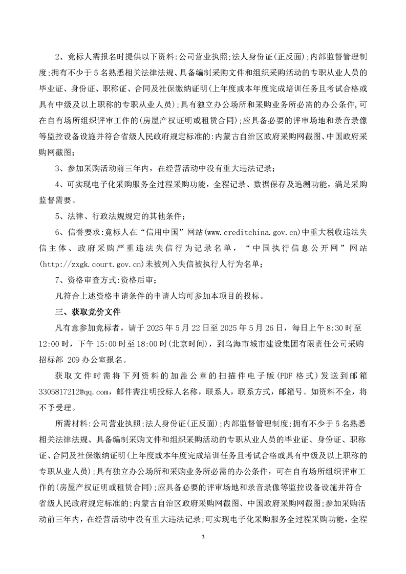- 2025-07-21烏海市城市建設投資集團有限責任公司五虎山井田南部采空區(qū)災害綜合治理項目公開招聘項目負責人延長報名時間的通知