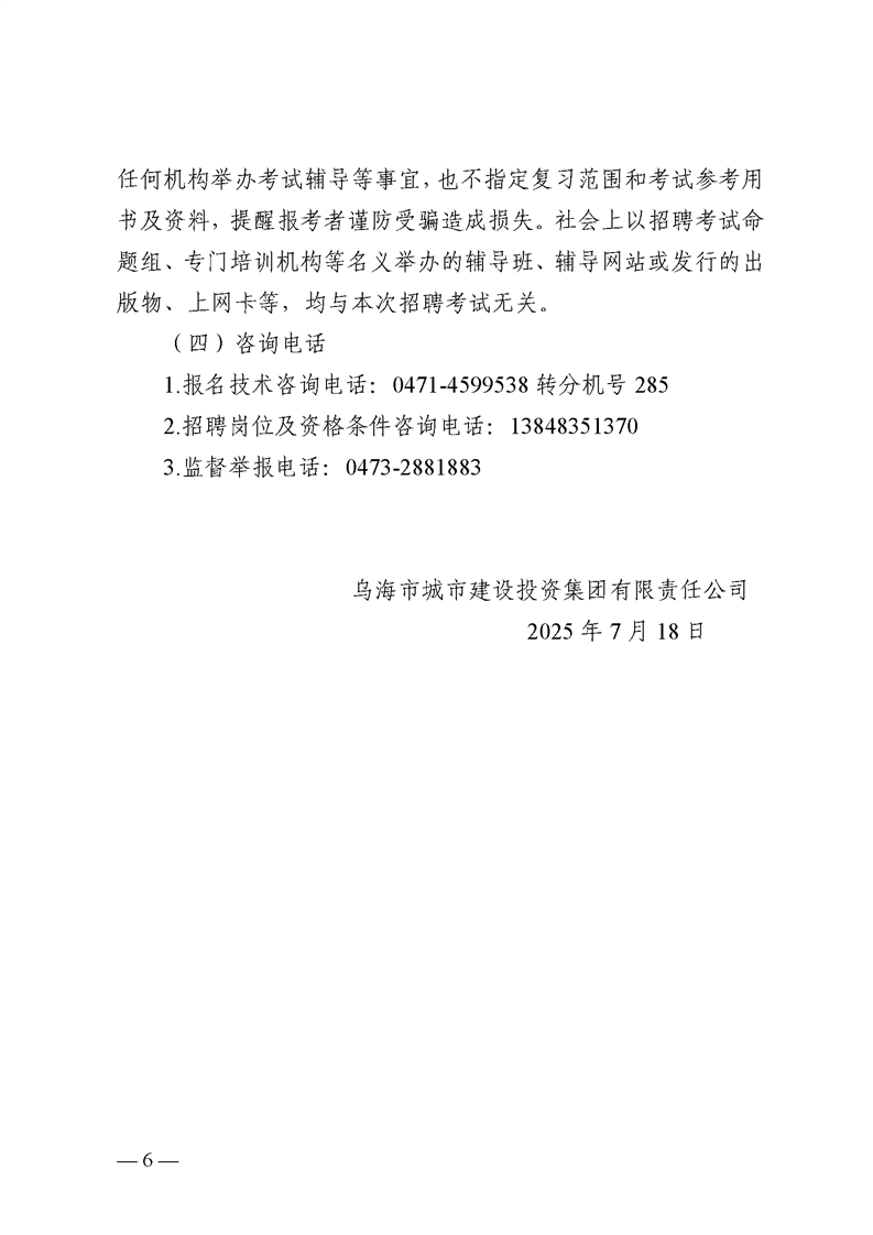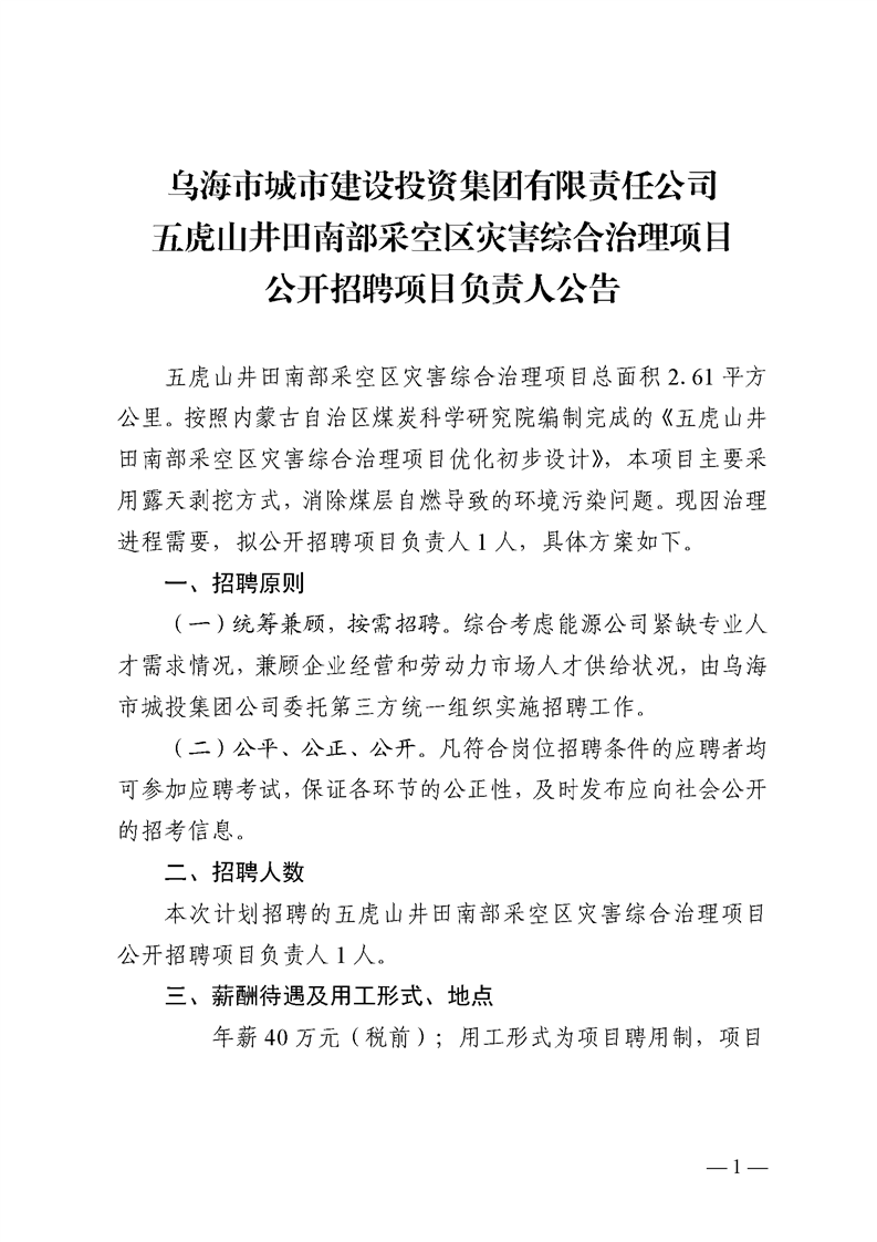 - 2025-07-24烏海市城市建設投資集團有限責任公司五虎山井田南部采空區(qū)災害綜合治理項目公開招聘項目負責人考試面試公告