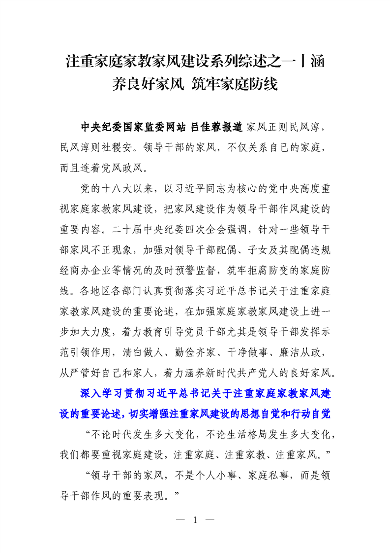 注重家庭家教家風(fēng)建設(shè)系列綜述之一丨涵養(yǎng)良好家風(fēng) 筑牢家庭防線(xiàn)