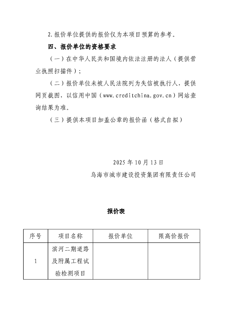 - 2025-09-17烏海市濱河城市運營服務(wù)有限責(zé)任公司廣告設(shè)計、制作、安裝服務(wù)商采購詢價文件