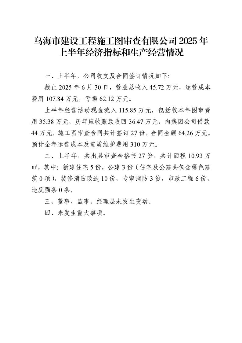 - 2025-03-10烏海市建設工程施工圖審查有限公司2024年度信息公開報告