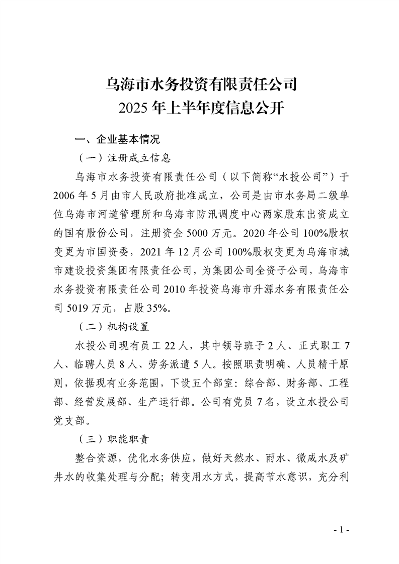 - 2025-03-10烏海市水務(wù)投資有限責(zé)任公司2024年度信息公開報告
