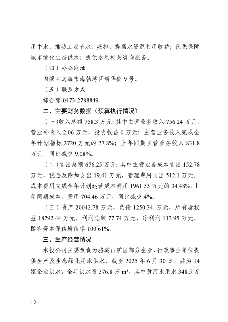 - 2022-07-06烏海市水務(wù)投資有限責(zé)任公司2022年第二季度信息公開