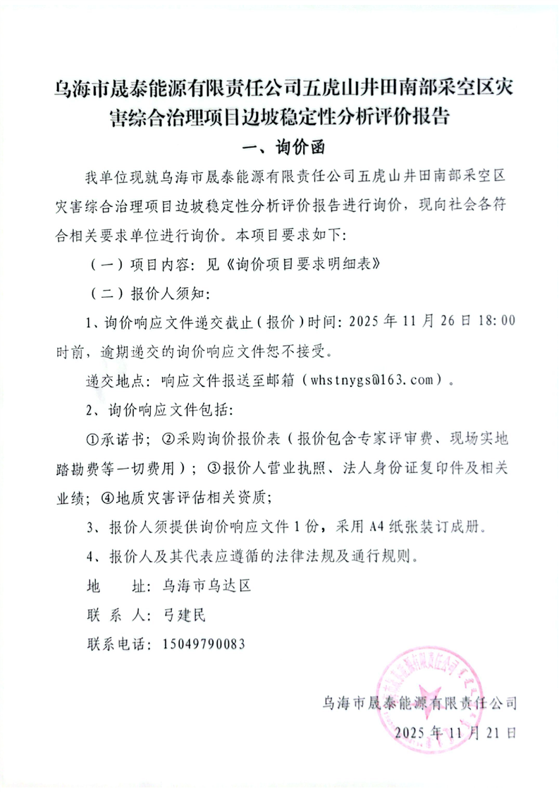 烏海市晟泰能源有限責(zé)任公司五虎山井田南部采空區(qū)災(zāi)害綜合治理項(xiàng)目邊坡穩(wěn)定性分析評價(jià)報(bào)告