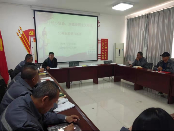 按照《關(guān)于在市國資系統(tǒng)基層黨組織中開展“踐行初心使命,加強(qiáng)愛國主義教育”主題黨日活動的通知》要求,為激發(fā)廣大黨員干部的愛國熱情,凝聚奮進(jìn)新時代的磅礴偉力,使愛國主義成為黨員干部的堅定信念、精神力量和自覺行動,10月24日,城市供水公司開展“踐行初心使命,加強(qiáng)愛國主義教育”主題黨日活動。五個基層黨支部分別完成奏唱國歌、重溫入黨誓詞、誦讀黨章、繳納黨費規(guī)定動作后,黨委委員在所在支部解讀《深入學(xué)習(xí)貫徹習(xí)近平總書記考察內(nèi)蒙古重要講話精神宣傳提綱》并組織黨員開展豐富多彩的主題黨日活動。